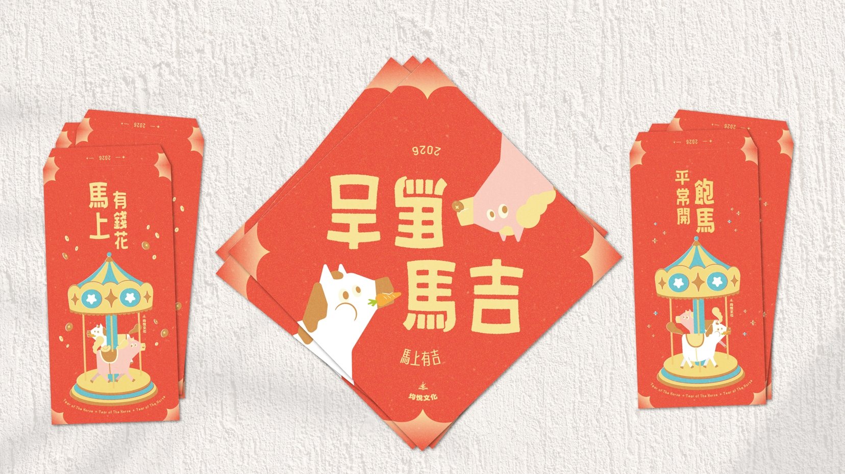 今年我們以旋轉木馬為靈感,將童心轉化為滿滿財氣與福氣! 兩款紅包大玩諧音梗,「平時開飽馬」祝您生活富足、衣食無憂;「馬上有錢花」讓財富隨著好運旋轉而至。搭配兩匹快樂小馬組成的「馬吉馬吉」斗方,象徵與親友感情永遠「麻吉」,用幽默感與超萌圖案為您的新年增添獨特心意! PS.數量有限,發完為止,有興趣的教師們可主動聯繫當區業務取得喔!