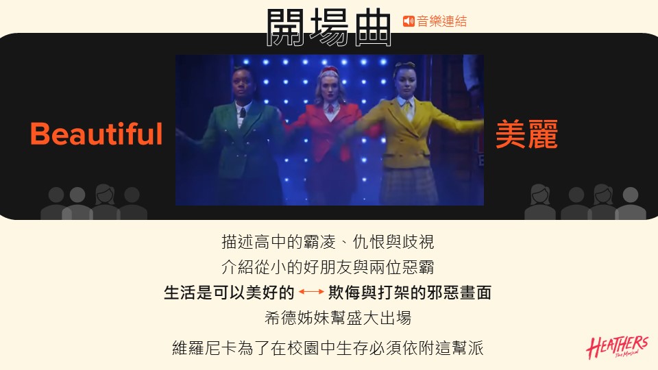 改編自邪典經典電影《希德姊妹幫》的音樂劇,以探討校園霸凌為主軸,揭開一個荒誕卻深具反思的故事。