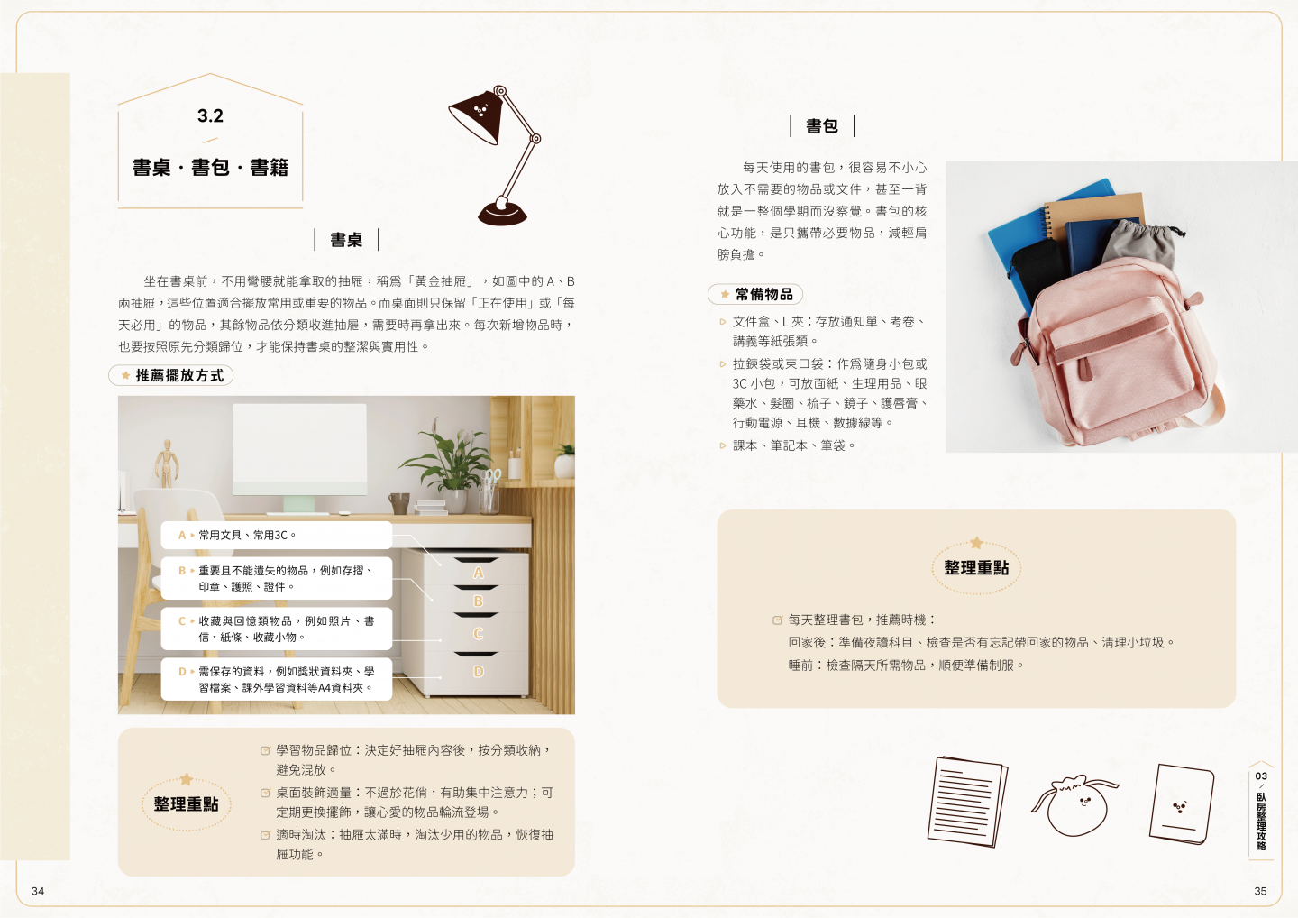 ※以下內容建議以電腦觀看,畫面較為美觀唷! 整理生活誌——整理.前進 整理環境,也整理心境! 由職業整理師團隊撰寫 一起體驗讓生活更自在的整理魔法 本書從規劃理想環境開始,帶你一步步找出適合自己的整理方式, 並詳細拆解各類衣物、文具、小物等物品的收納技巧, 讓忙碌的生活也能井然有序,自在不慌亂。