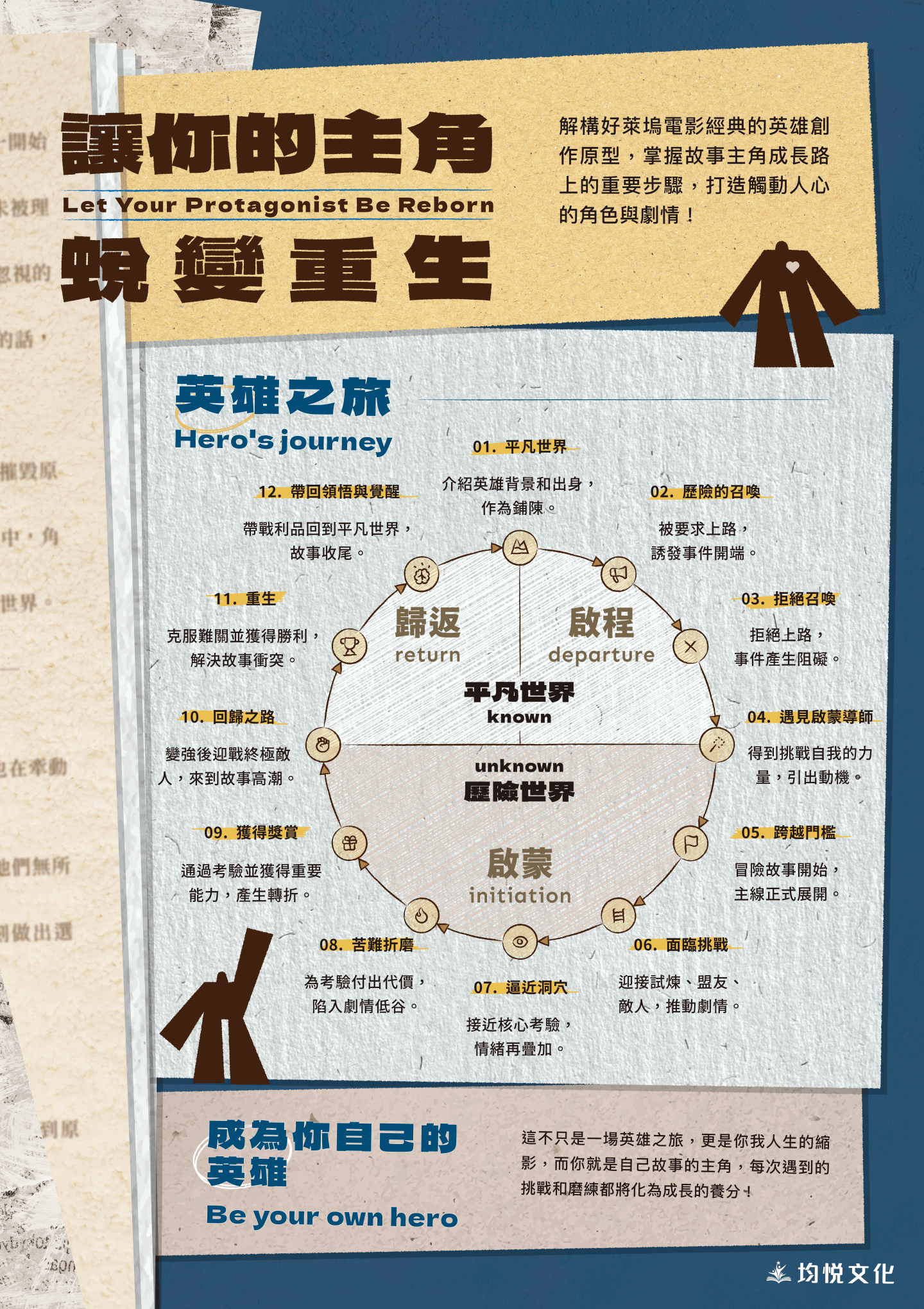 解構好萊塢電影經典的英雄創作原型,掌握故事主角成長路上的重要步驟,打造觸動人心的角色與劇情!