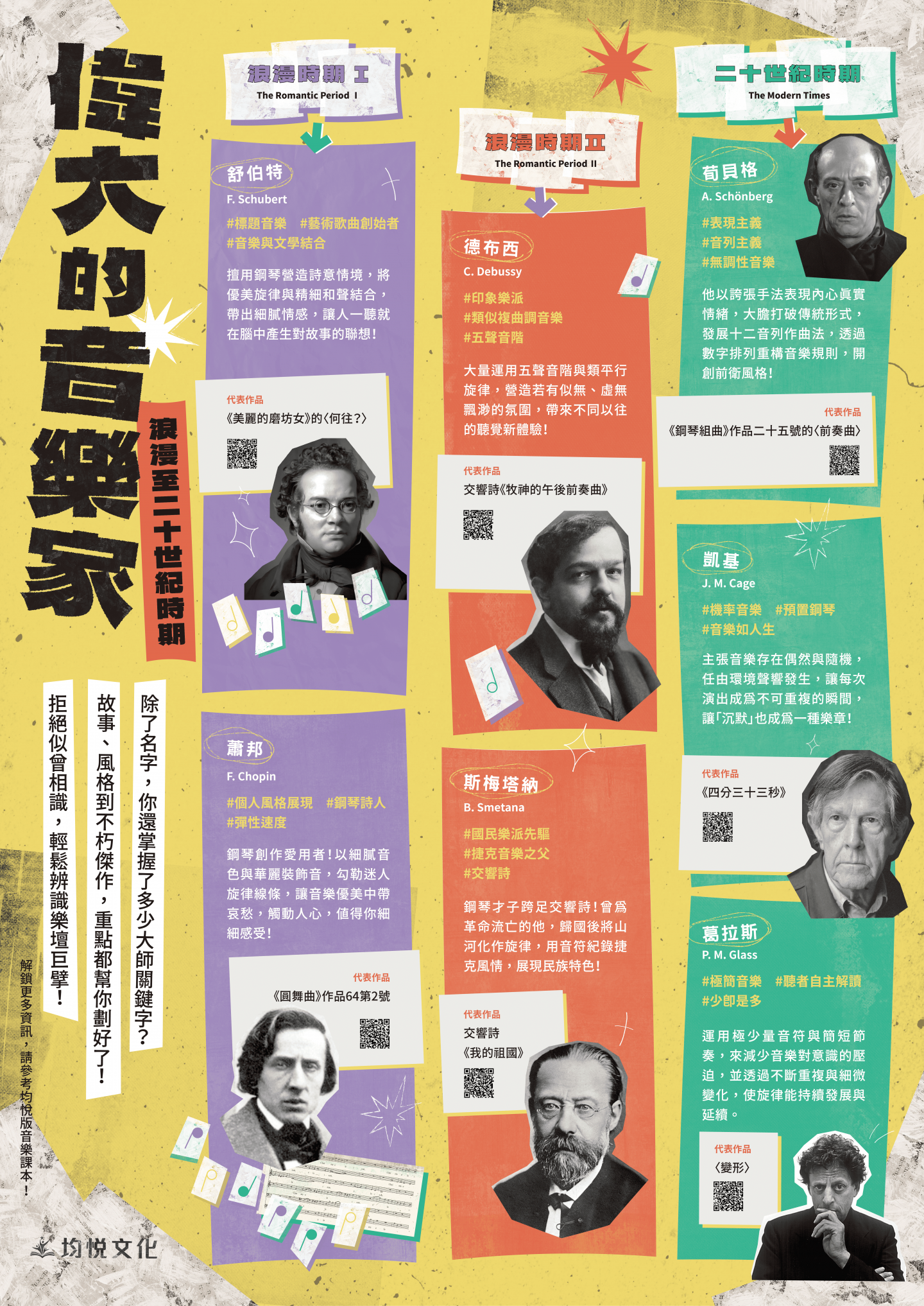 除了名字,你還掌握了多少大師關鍵字?故事、風格到不朽傑作,重點都幫你劃好了!拒絕似曾相識,輕鬆辨識樂壇巨擘!