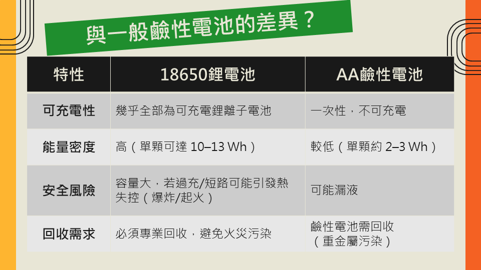 發佈日期:114/10/07 搭配科目:生活科技 搭配範圍:機電整合 近年來不斷傳出鋰電池爆炸的新聞,而我們經常使用到的18650鋰電池也會有這個危險嗎?其實!任何物品只要安全使用得當,就可以享受科技所帶來的便利又能用得安心!一起來認識18650鋰電池!
