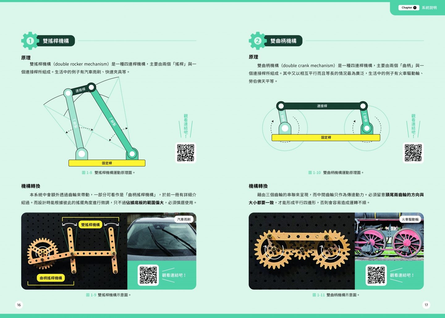 本書將針對組裝過程更加詳細說明,從畫面的設計安排到齒輪機構的運用,配合書中豐富的影音支援,深入創意無限的機構世界!